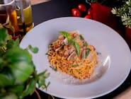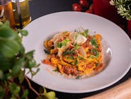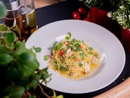 Własnoręcznie wyrabiany makaron tagliatelle 4 mm, karczochy,skórka z cytryny, sos winny z pecorino romano DOP opakowanie